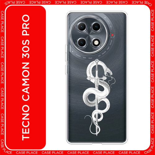 Чехол на Tecno Camon 30S Pro / Текно Камон 30S Про с принтом Змея с мечом белая, прозрачный