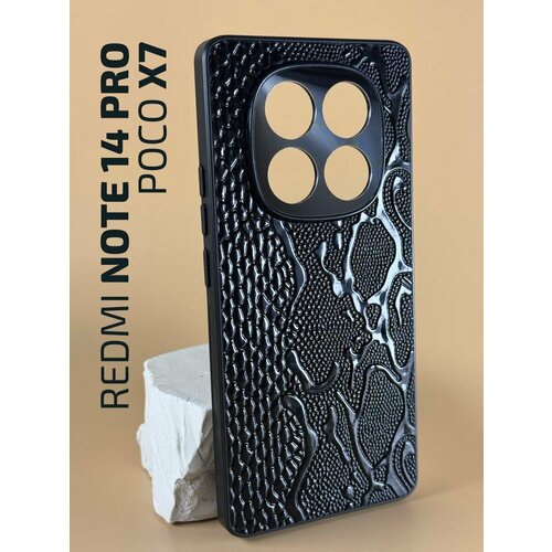Чехол кожаный на Redmi Note 14 Pro /Poco X7 (Чехол на Редми Нот 14 Про/Поко Х7), с защитой камеры, змея