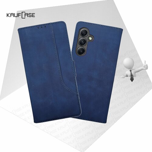 Чехол книжка с карманом кошельком для вашего смартфона Samsung A35 (SM-A356) (6.6"), темно-синий. Матовая текстура под кожу, дополнительный карман на крышке чехла, отделения для карт и купюр