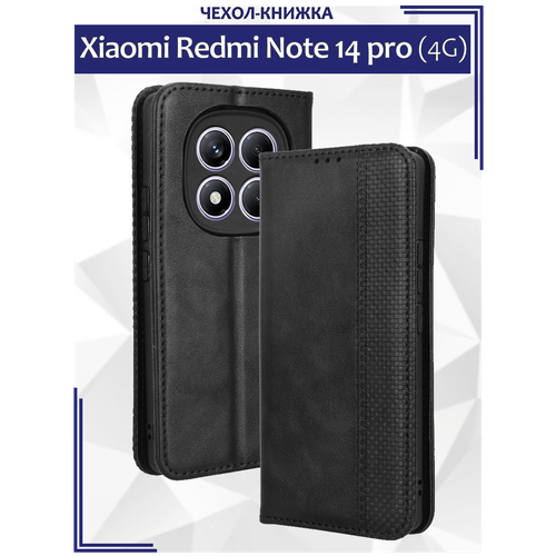 Чехол книжка для Xiaomi Redmi Note 14 Pro (4G) с магнитом и отделением под карты / Сяоми Редми Ноут 14 Про 4G (черная)