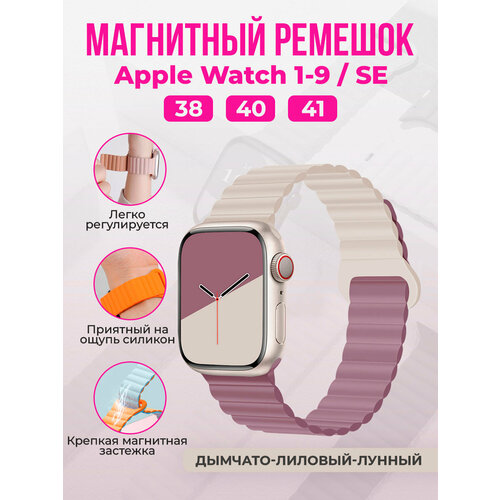 Магнитный силиконовый ремешок для Apple Watch 1-9 / SE (38/40/41 мм), дымчато-лиловый-лунный