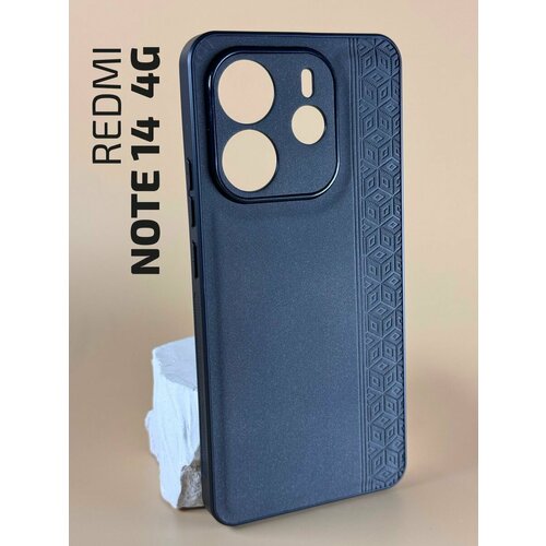 Чехол кожаный Redmi Note 14 4G /Чехол на Редми Нот 14, с защитой камеры, геометрия, серый