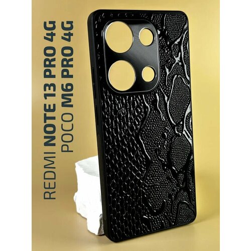 Чехол кожаный для Xiaomi Redmi Note 13 Pro 4G /Poco M6 Pro 4G (Чехол на Редми Ноте 13 Про/Поко М6 Про) с защитой камеры, змея