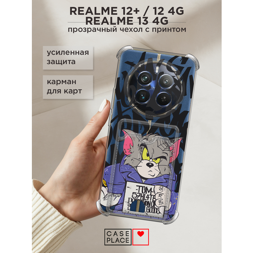 Чехол на Realme 12+/12 4G/13 4G (Реалми 12 Плюс/12 4G/13 4G) с картой и принтом Том и Джерри