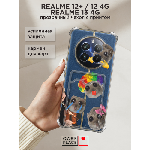Чехол на Realme 12+/12 4G/13 4G (Реалми 12 Плюс/12 4G/13 4G) с картой и принтом Хомяки