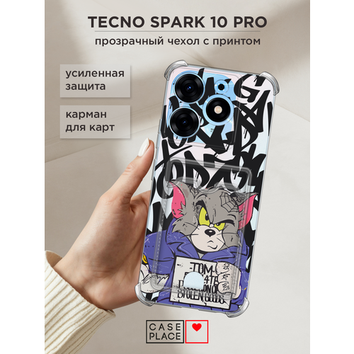 Чехол на Tecno Spark 10 Pro (Текно Спарк 10 Про) с картой и принтом Том и Джерри