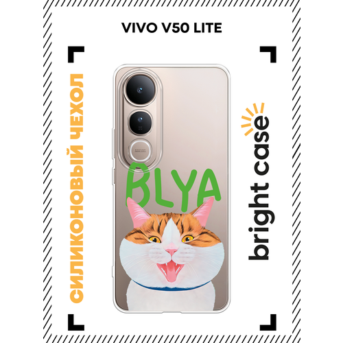Чехол на Vivo V50 lite / Виво В50 Лайт с принтом Белый котик с надписью, прозрачный