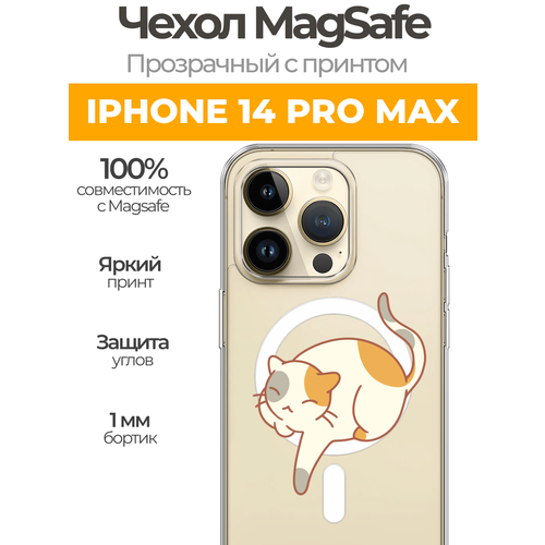 Чехол на Айфон 14 Про Макс (Apple iPhone 14 Pro Max) MagSafe с магнитом и принтом "Трёхцветный котик"