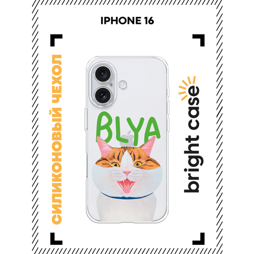 Чехол на Apple iPhone 16 / Айфон 16 с принтом Белый котик с надписью, прозрачный