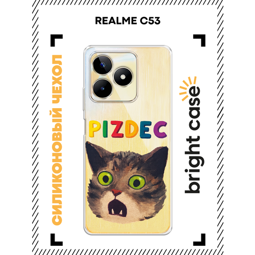 Чехол на Realme C53/C51/Note 50 / Реалми С53/С51/Нот 50 с принтом Испуганный котик с надписью, прозрачный