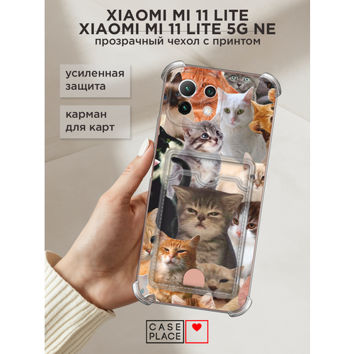 Чехол на Xiaomi Mi 11 Lite/5G NE (Сяоми Ми 11 Лайт/5G NE) с картой и принтом Мемные коты