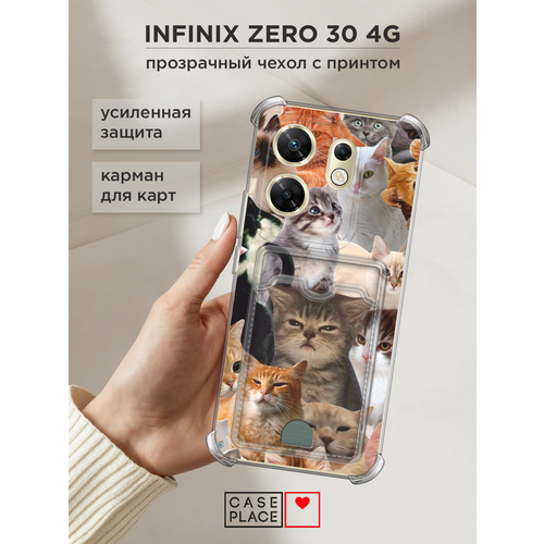 Чехол на Infinix Zero 30 4G (Инфиникс Зеро 30 4G) с картой и принтом Мемные коты
