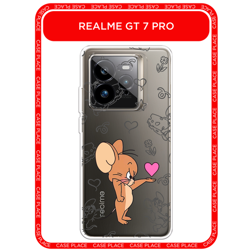 Чехол на Realme GT 7 Pro / Реалми GT 7 Про с принтом Джерри и сердце 2, прозрачный