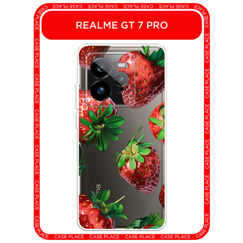 Чехол на Realme GT 7 Pro / Реалми GT 7 Про с принтом Сочная клубника 3, прозрачный