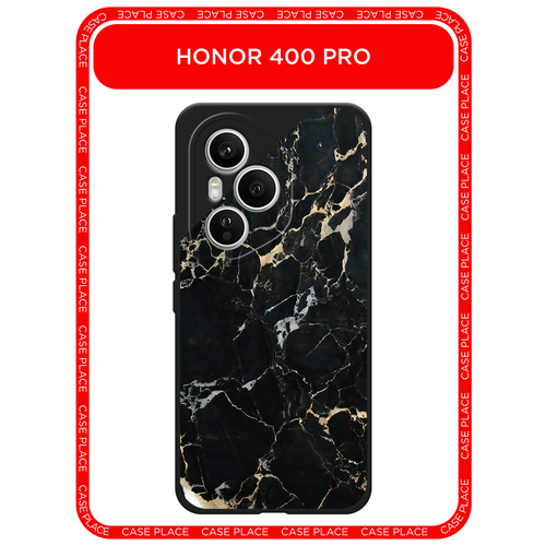 Черный матовый чехол на Honor 400 Pro / Хонор 400 Про с принтом Черный мрамор уголок