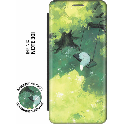 Чехол-книжка Песец на качелях на Infinix Note 30i / Инфиникс Ноут 30ай с эффектом блика черный