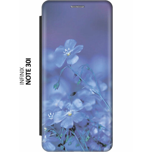 Чехол-книжка Голубые цветы на Infinix Note 30i / Инфиникс Ноут 30ай черный