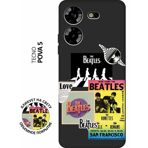 Матовый чехол Beatles Stickers для Tecno Pova 5 / Техно пова 5 с 3D эффектом черный