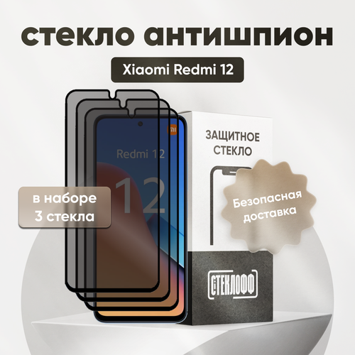 Набор защитных стекол антишпион для Xiaomi Redmi 12, олеофобное покрытие, приватное стекло, Стеклофф, 3 шт