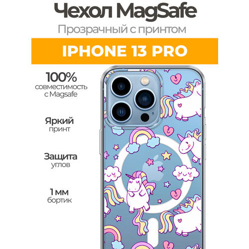 Чехол на Айфон 13 Про MagSafe с магнитом с принтом "Sweet unicorns dreams"