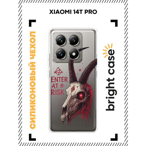 Чехол на Xiaomi 14T Pro / Сяоми 14T про с принтом Кровавый череп с рогами, прозрачный
