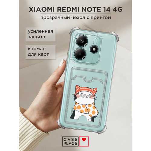 Чехол на Xiaomi Redmi Note 14 4G (Редми Нот 14 4G) с картой и принтом Котёнок в шапке