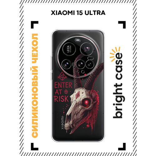 Чехол на Xiaomi 15 Ultra / Сяоми 15 Ультра с принтом Кровавый череп с рогами, прозрачный