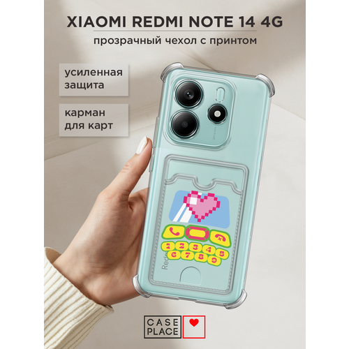Чехол на Xiaomi Redmi Note 14 4G (Редми Нот 14 4G) с картой и принтом Пиксельное сердечко