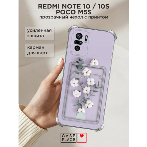Чехол на Xiaomi Redmi Note 10/10S/Poco M5s (Редми Нот 10/10S/Поко M5s) с картой и принтом Веточка хлопка