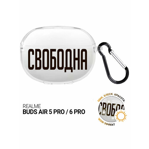 Чехол на Realme Buds Air 5 Pro / 6 Pro с принтом "Free" прозрачный