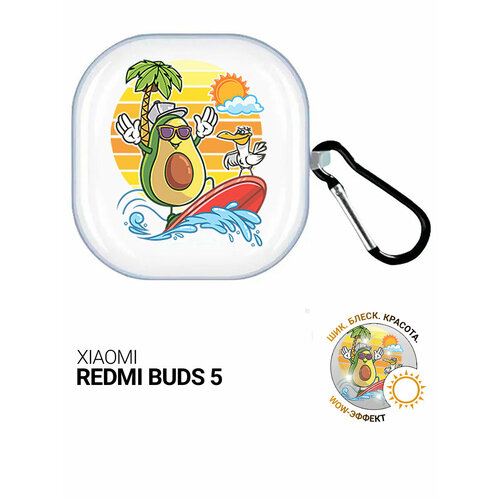 Чехол на Xiaomi Redmi Buds 5 с принтом "Avocado Surfer" прозрачный