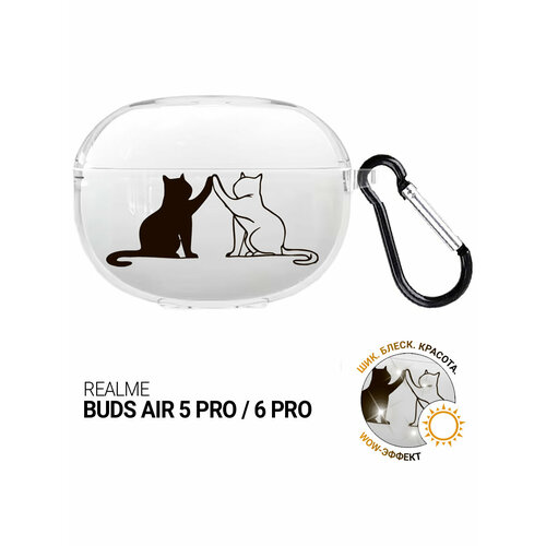 Чехол на Realme Buds Air 5 Pro / 6 Pro с принтом "Cats" прозрачный