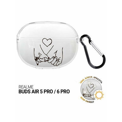 Чехол на Realme Buds Air 5 Pro / 6 Pro с принтом "Lovers Hands" прозрачный