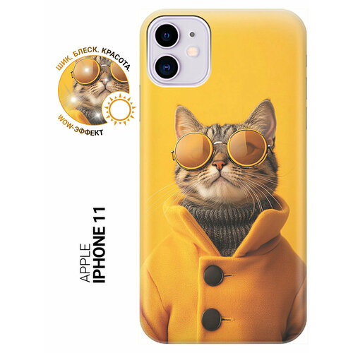 Силиконовый чехол на Apple iPhone 11 с принтом "Котик в желтых очках"