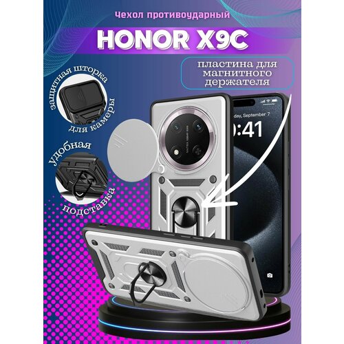Чехол противоударный armors на Honor X9C / Хонор Х9С с защитой камеры (Серебряный)