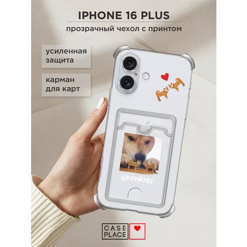 Чехол на Apple iPhone 16 Plus (Айфон 16 Плюс) с картой и принтом Целуйтес мем
