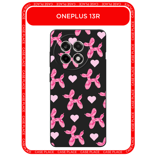Черный матовый чехол на Oneplus 13R/Ace 5/5 Pro / Ван Плас 13R/Асе 5/5 Про с принтом balloon dogs pink