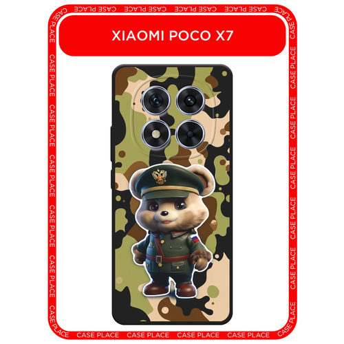 Черный матовый чехол на Poco X7/Xiaomi Redmi Note 14 Pro 5G / Поко X7 с принтом Мишка в форме 5