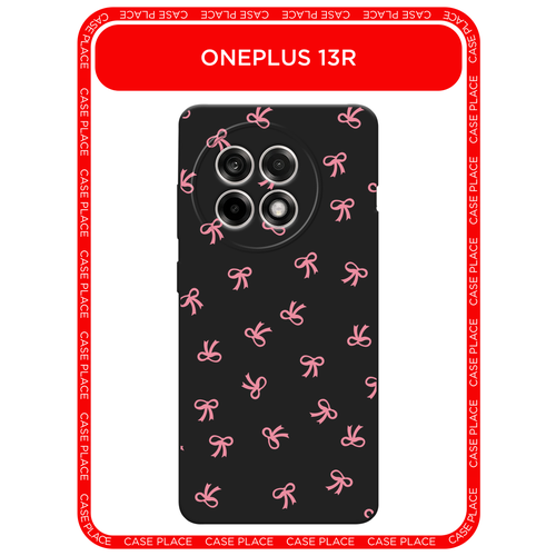 Черный матовый чехол на Oneplus 13R/Ace 5/5 Pro / Ван Плас 13R/Асе 5/5 Про с принтом Маленькие розовые бантики