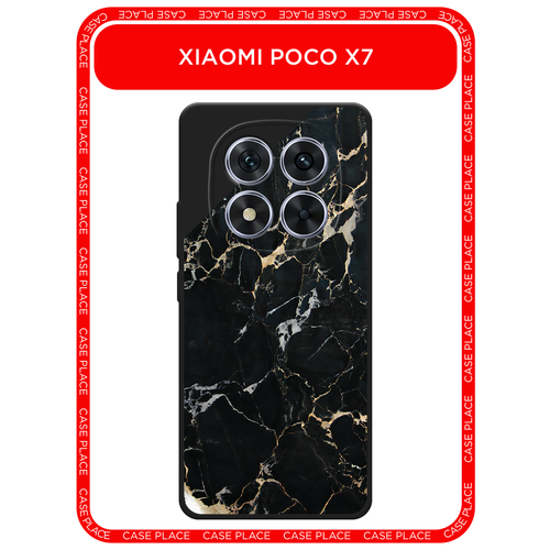 Черный матовый чехол на Poco X7/Xiaomi Redmi Note 14 Pro 5G / Поко X7 с принтом Черный мрамор уголок
