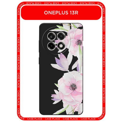 Черный матовый чехол на Oneplus 13R/Ace 5/5 Pro / Ван Плас 13R/Асе 5/5 Про с принтом Нежные анемоны
