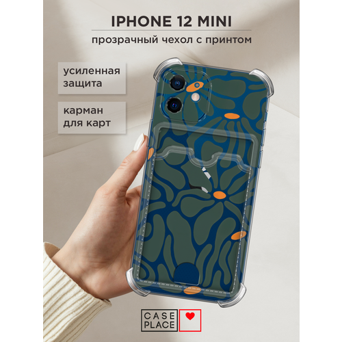 Чехол на Apple iPhone 12 mini (Айфон 12 Мини) с картой и принтом Волнистые цветы