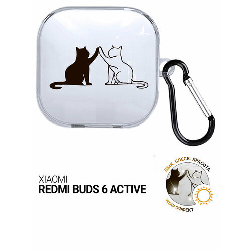 Чехол на Xiaomi Redmi Buds 6 Active с принтом "Cats" прозрачный