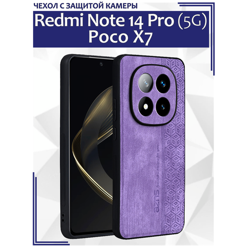 Чехол для Poco X7/ Redmi Note 14 Pro (5G) кожаный с тиснением / Поко Х7 с защитой камеры (фиолетовая)