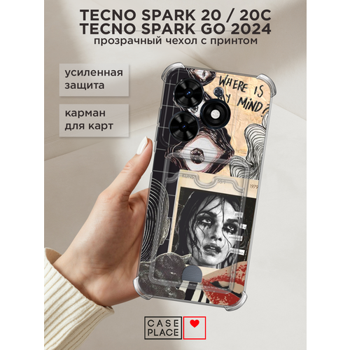 Чехол на Tecno Spark Go 2024/Spark 20C (Текно Спарк Го 2024/Спарк 20C) с картой и принтом Коллаж