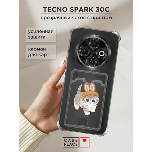 Чехол на Tecno Spark 30C (Текно Спарк 30C) с картой и принтом Котик с ушками зайца