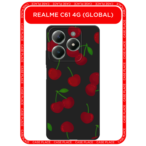 Черный матовый чехол на Realme C61 4G (Global) / Реалми C61 4G с принтом Вишни паттерн 2