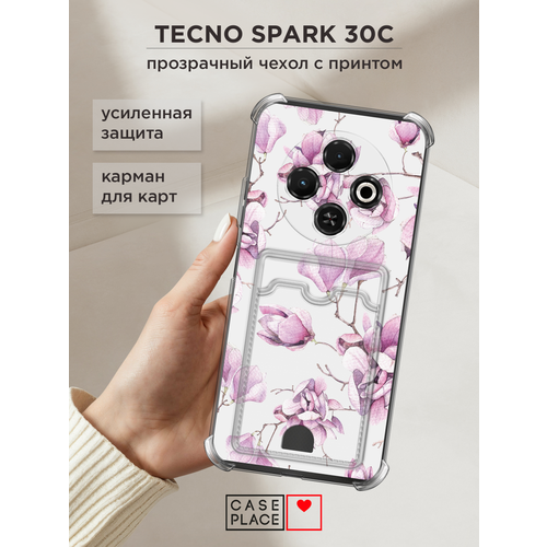Чехол на Tecno Spark 30C (Текно Спарк 30C) с картой и принтом Искусственные цветы