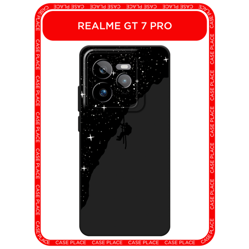Черный матовый чехол на Realme GT 7 Pro / Реалми GT 7 Про с принтом Скалолаз в космосе
