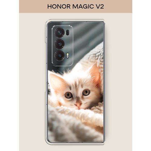 Чехол на Honor Magic V2 / Хонор Меджик V2 с принтом Белый шкодливый котенок